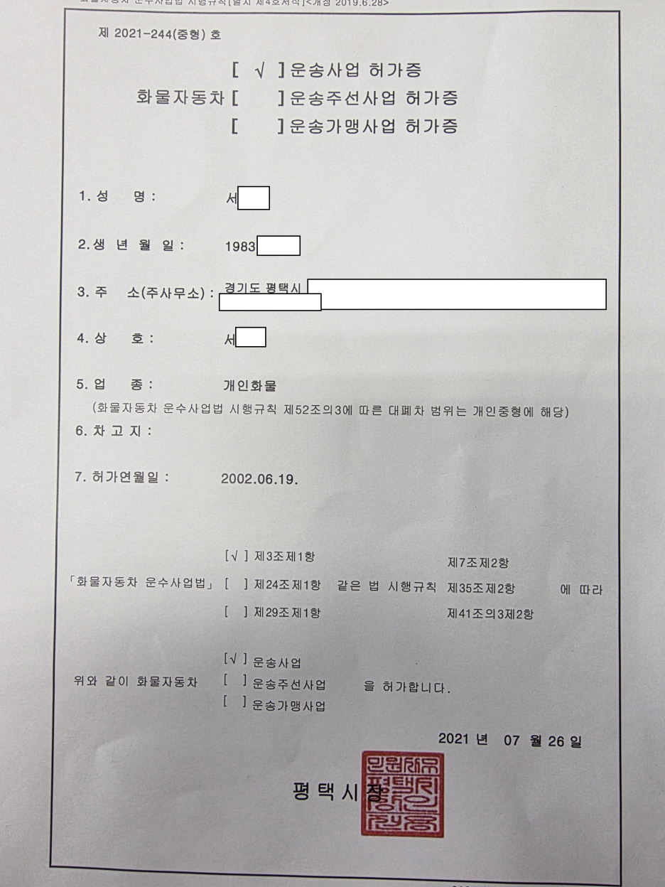 📁 영업용 번호판(운송사업허가권)