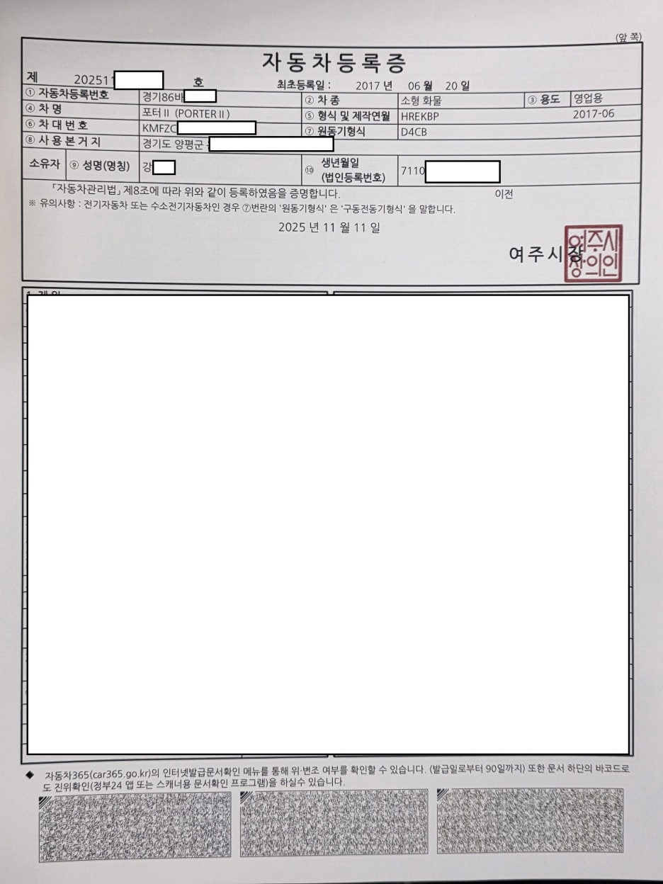 📁 용달 넘버(운송사업허가권) 양도양수 처리 과정 📅 2025.11.06 접수 2025.11.11 최종 이전 안녕하세...